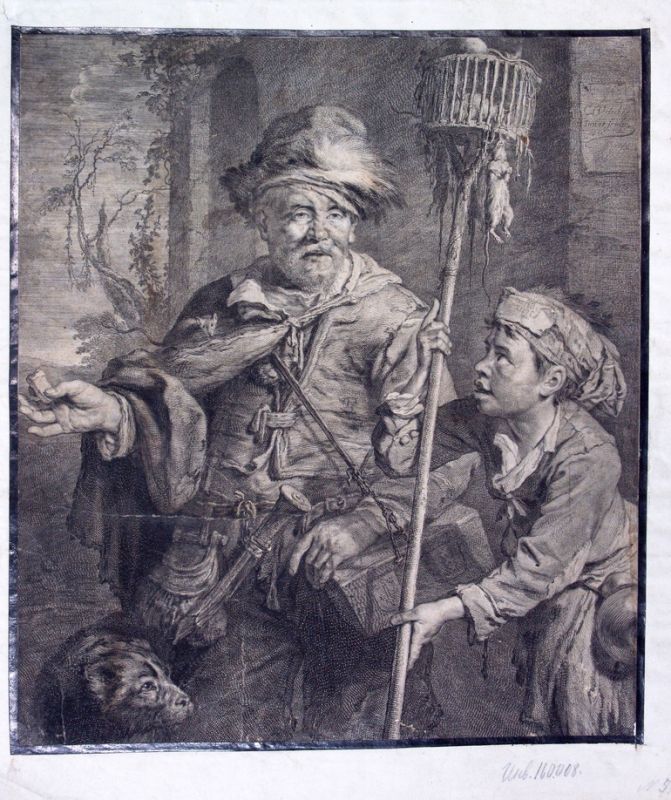 Борьба с грызунами — вечная проблема городов. Европейцы, признав кошку нечистым животным, почти полностью истребили этого незаменимого охотника на крыс, что привело к размножению последних. Так возникла профессия крысолова. Были они городскими, дворцовыми и странствующими. Такого странствующего крысолова с помощниками — слугой и собакой — мы видим на работе Корнелиса Висхера. Старик держит палку с клеткой-ловушкой, с живыми крысами внутри и на её крышке, к ней же подвязаны трупики грызунов.