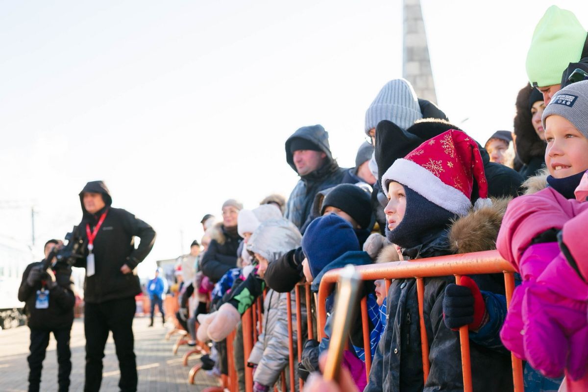 На перроне, затаив дыхание, замерли десятки семей — в их глазах читалось нетерпеливое ожидание встречи с Дедом Морозом.