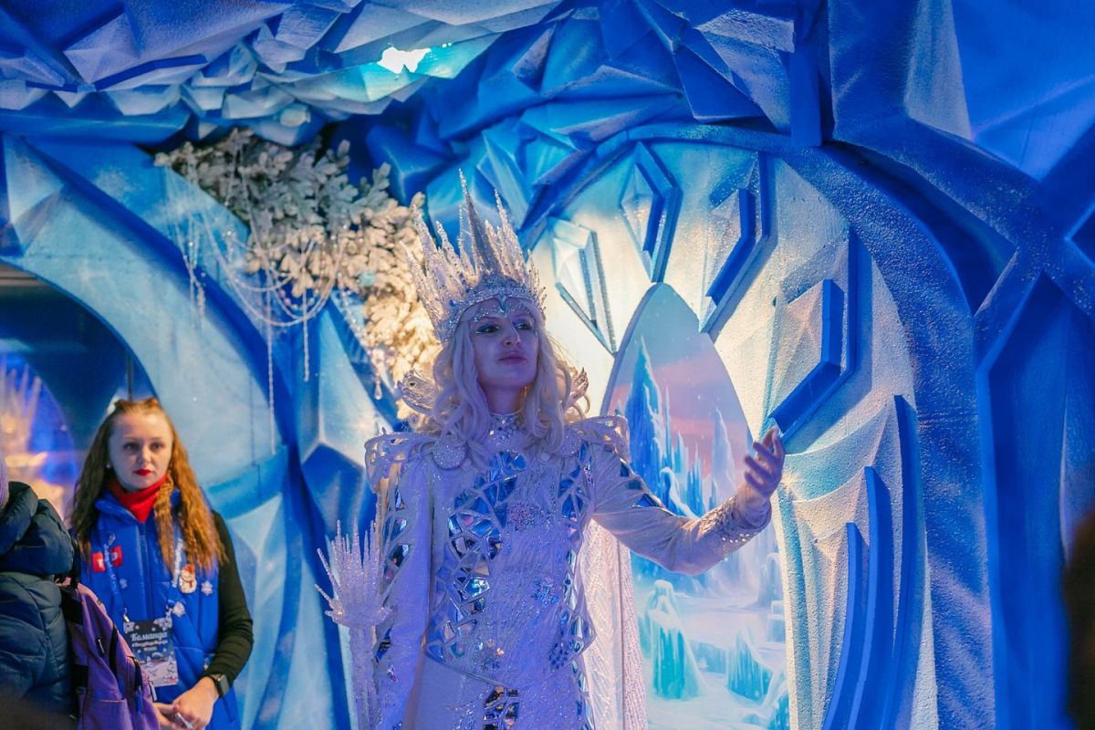 Неожиданным сюрпризом для многих стала добрая Снежная королева, приглашавшая гостей в свою зеркальную резиденцию. Внутри вагона начиналось удивительное путешествие в ледяное царство с кривыми зеркалами и тайнами зимнего мира. Детям давали время на разгадки, а потом они увидели саму королеву. Всё вокруг было сине‑голубым. А в завершении встречи прошла фотосессия с героиней сказок.