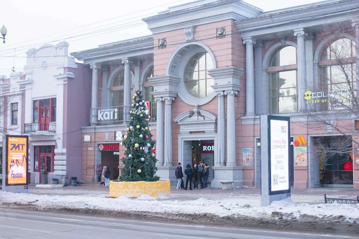 Неподалёку, у Комсомольской площади, празднично оформлена телега одного из заведений. Витрины каждого магазина и даже научной библиотеки сияют маленькими огоньками. Украшения размещены и на балконах, и над входными козырьками. Бульвары также украшены к празднику: в разных местах установлены нарядные искусственные ёлки.