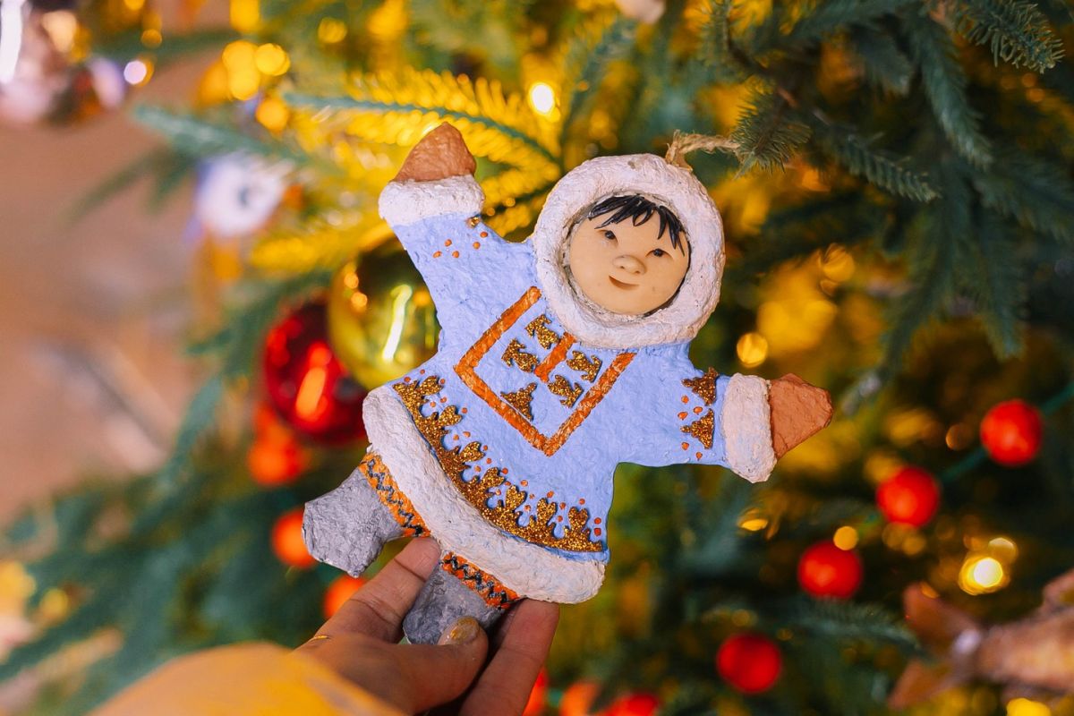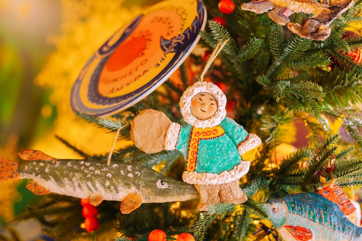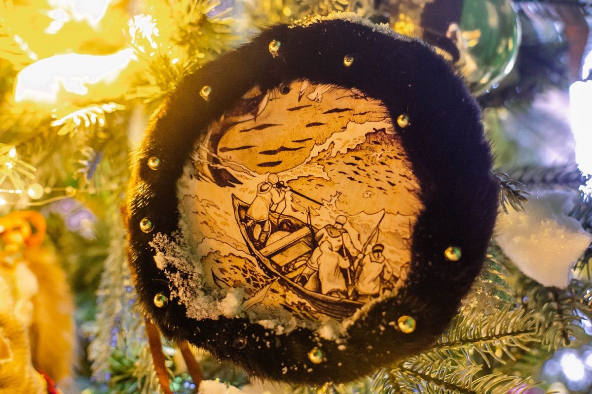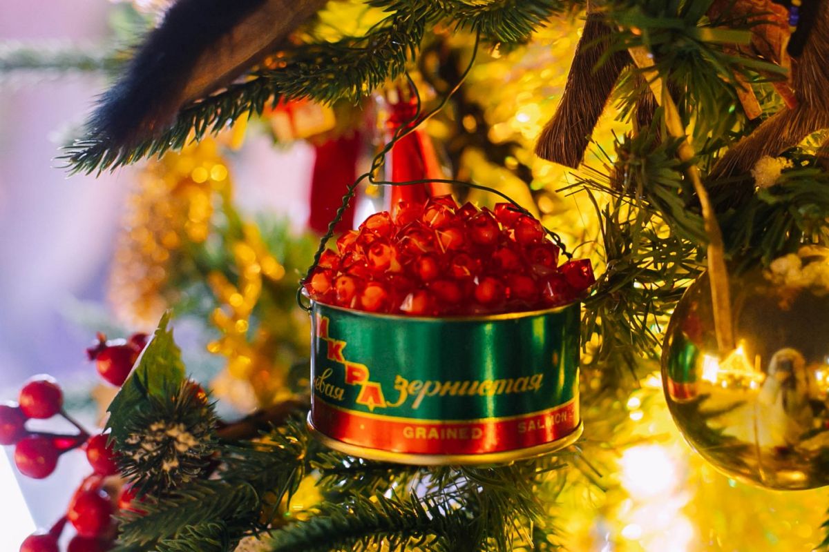Вот на пушистой веточке сверкает баночка с лососёвой икрой, а рядом — рыба и расписные шарики. Здесь и национальные узоры и игрушки, а также логотипы ведущих предприятий. Какие только чудеса природы не отразили мастера в новогодних игрушках! Эти рукотворные шедевры превратили каждую ёлку в уникальную историю, рассказанную через символы.