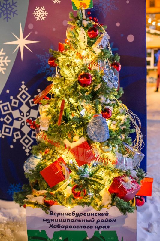 Впрочем, ещё в середине декабря в Хабаровске стартовал конкурс, где горожане могут проголосовать за самую красивую из 17 представленных новогодних ёлок от районов края. В первые дни лидировали украшенные рыбами деревья из Николаевского и Бикинского районов, затем первенство перешло к ёлкам Нанайского и Николаевского районов, а также Комсомольска‑на‑Амуре.