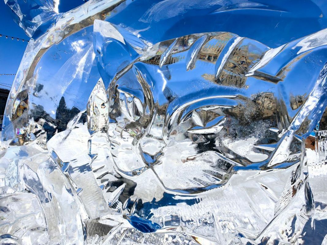 Повсюду слышен щелчок камер — каждый хочет запечатлеть эту зимнюю сказку. В лучах солнца скульптуры словно светятся изнутри, переливаясь всеми оттенками голубого и белого, а их утончённые формы отбрасывают на снег причудливые тени.