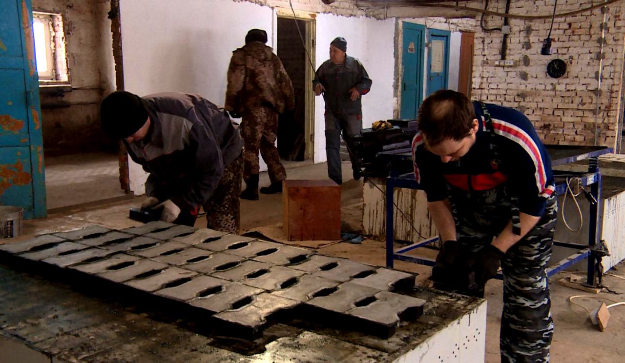 Вот Максим тщательно просеивает песок и замешивает бетонный раствор. Ему помогает другой воспитанник интерната Александр — вдвоём несут носилки с готовой смесью и набивают формы. У ребят с интеллектуальными нарушениями есть большое желание научиться чему‑то новому и быть полезными обществу.