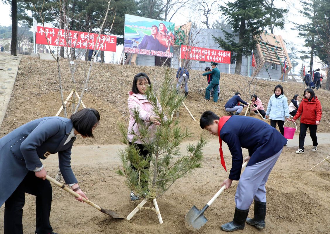 В КНДР 14 марта — день посадки деревьев. Ежегодно весной все корейцы сажают деревья на улицах, горах и в поселках.