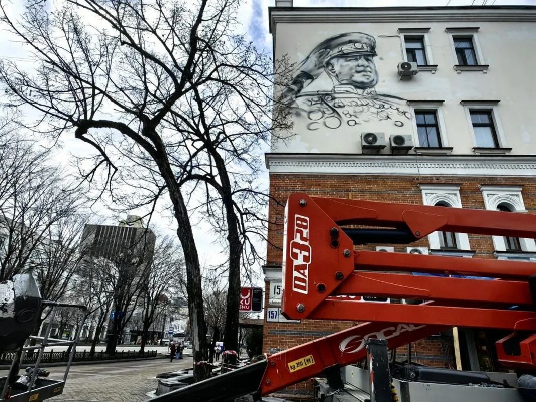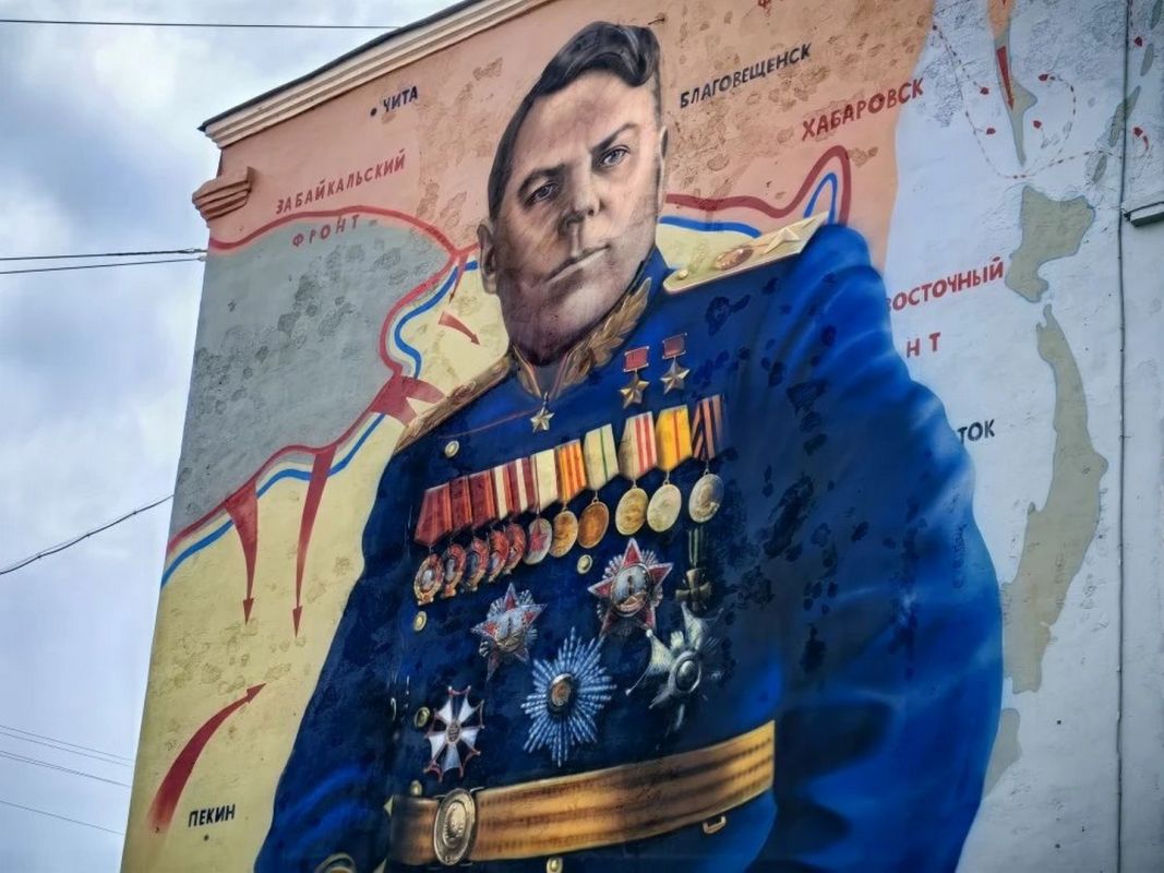 Краски Победы: на стене в Хабаровске нарисовали маршала Жукова