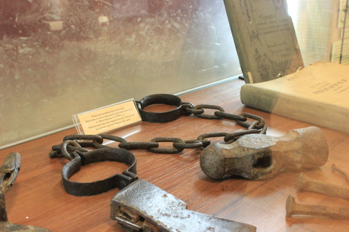 В коллекции есть даже кандалы. Они найдены во время ремонта вокзала в Волочаевке. Труд каторжников использовался и на строительстве железнодорожного моста через Амур в начале ХХ века. Есть и вещи, поднятые со дна реки во время реконструкции моста, например старинный подсвечник.