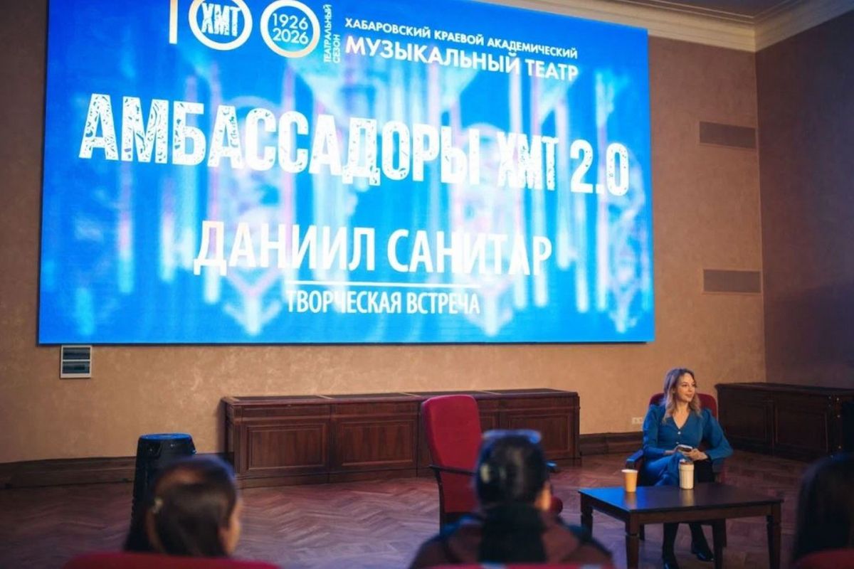 Для амбассадоров Хабаровского музыкального театра прошла творческая встреча с талантливым и обаятельным артистом Даниилом Санитаром, пополнившим в этом сезоне труппу ХМТ и блестяще дебютировавшем в оперетте «Сильва» (12+).
