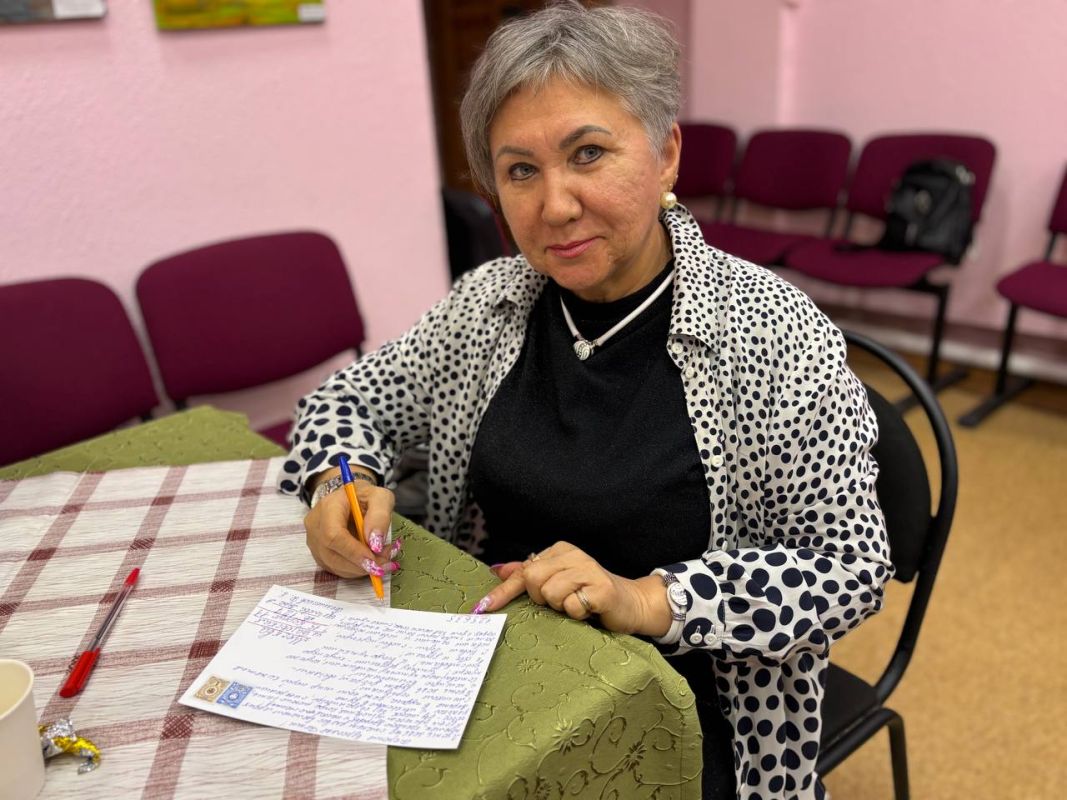 И работа закипела. Кто‑то с ностальгической улыбкой вспоминал, как отправлял открытки друзьям по всему Союзу. Одни подписывали карточки для участников СВО, другие — старым друзьям, третьи — родственникам. Нашлись и те, кто впервые в жизни выводил буквы на бумажном послании: «Дорогая… Желаю здоровья, счастья…»