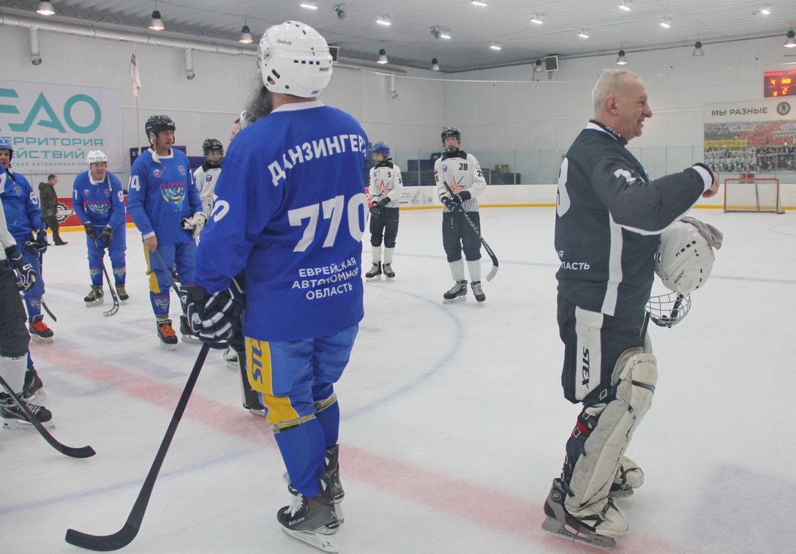 В минувший выходной биробиджанская ледовая арена стала местом жаркой товарищеской встречи по мини-хоккею с мячом. Против юных воспитанников спортивной школы ЕАО, команды «Надежда-Юниор», вышли местные ветераны спорта — команда «Маккаби», а вместе с ними — гость из Ростова-на-Дону с необычной судьбой.