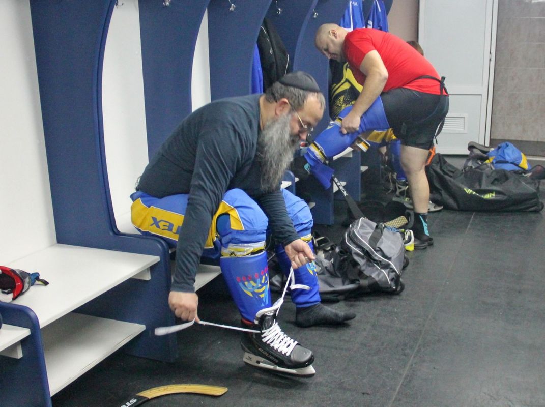 Зашнуровав хоккейные коньки, ребе продолжил свой рассказ в раздевалке, где другие игроки «Маккаби» с интересом ловили каждое его слово.