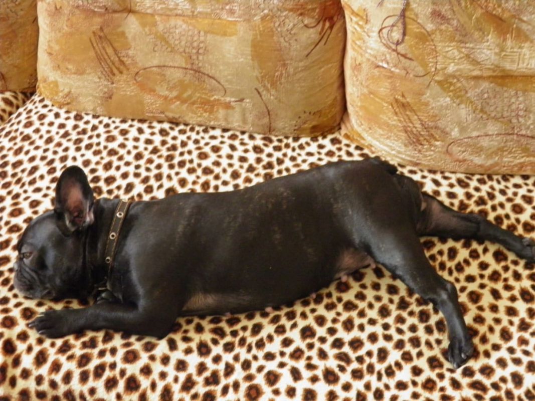 Во-вторых, несмотря на то, что французские бульдоги сильные, с хорошо развитой мускулатурой, им противопоказаны большие нагрузки, так как из-за особенностей строения у них слабое сердце и проблемы с дыханием. Но побегать «французы» очень любят. Джина с удовольствием играет с детьми на площадке и катается с горки. А рывок у неё бывает такой, что Настя иногда летит следом с поводком в руках в буквальном смысле этого слова, да ещё и с метр потом на животе едет.