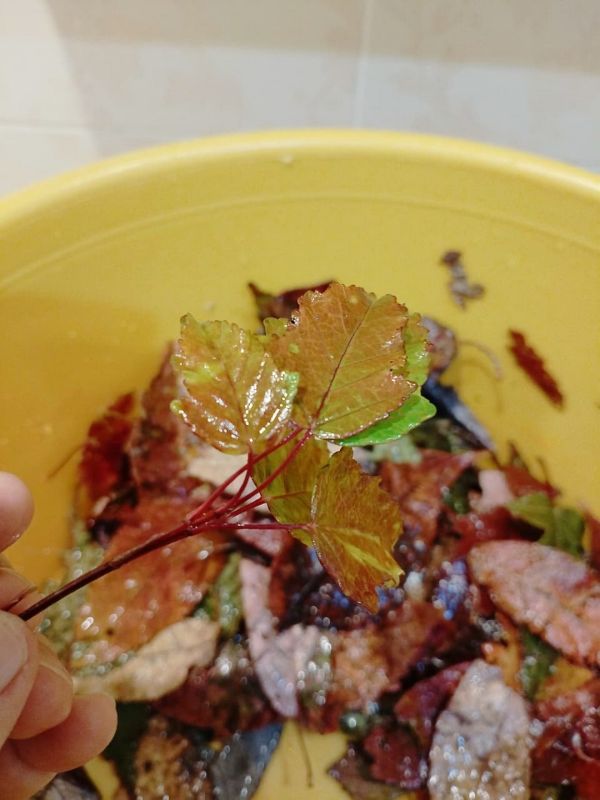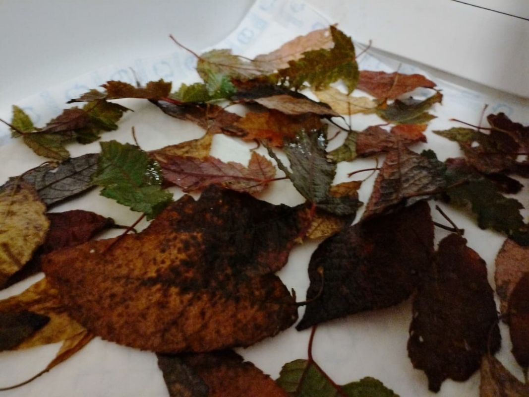 Через сутки глицерин слили, листья промыли в обычной воде и разложили на просушку на подоконнике, подстелив под них детскую разовую пеленку.