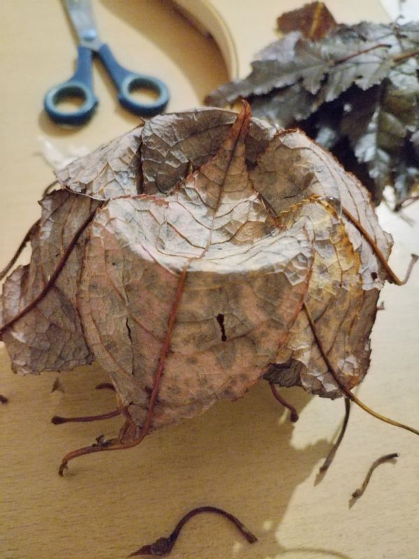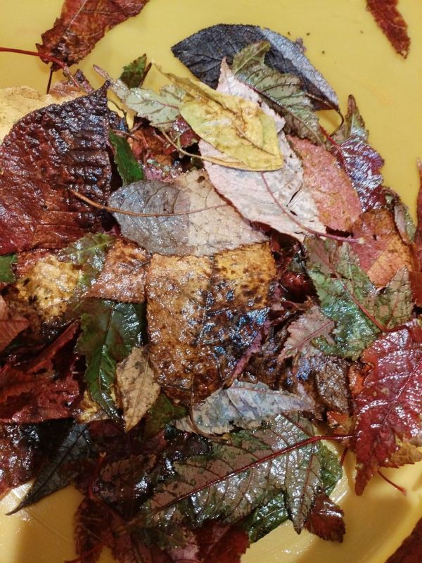 Собственно, во дворе нашего частного дома этого добра — листьев, предостаточно. Мы их насобирали полную охапку — черемуховые, кленовые… Решено было сделать букет.