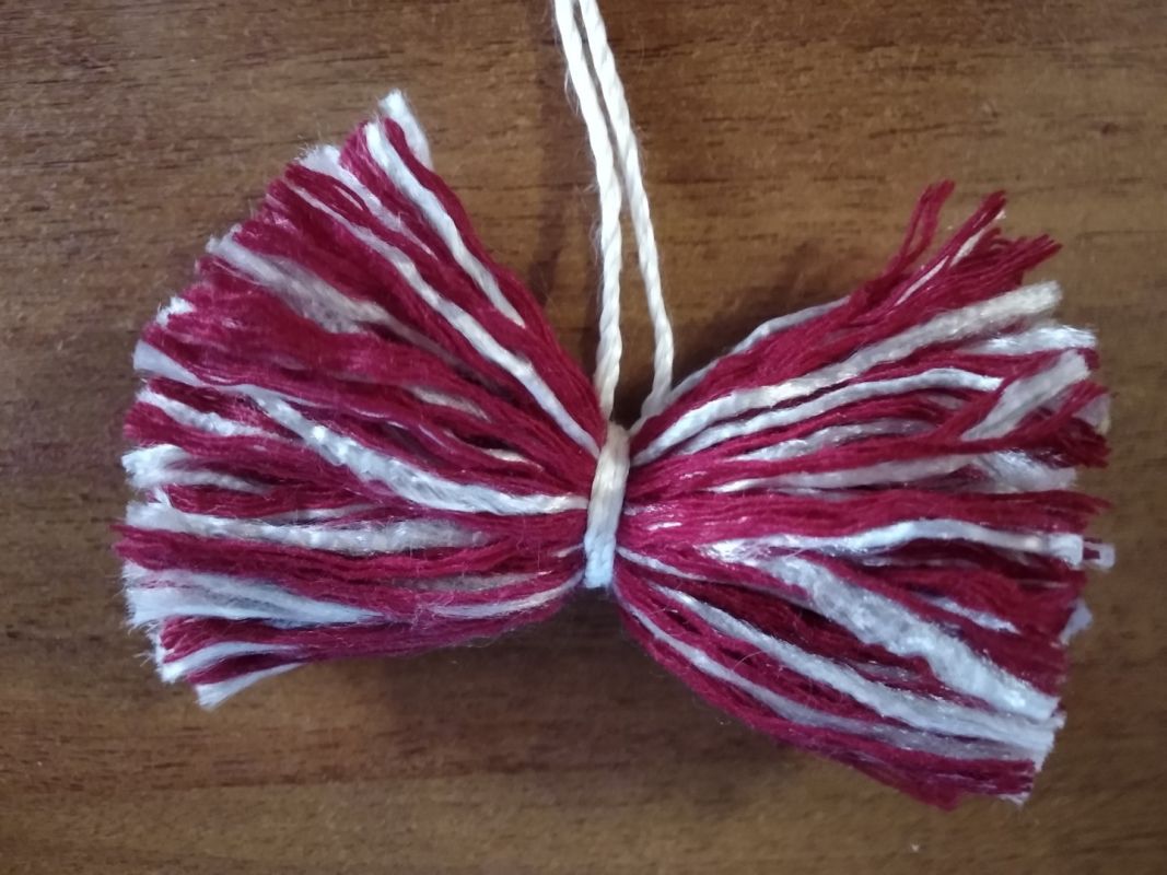А можно и гирлянду создать, ведь помпонов-то у нас получилось много. Для этого при помощи иглы нанизываем шарики на нитку и украшаем ёлку необычными «бусами».