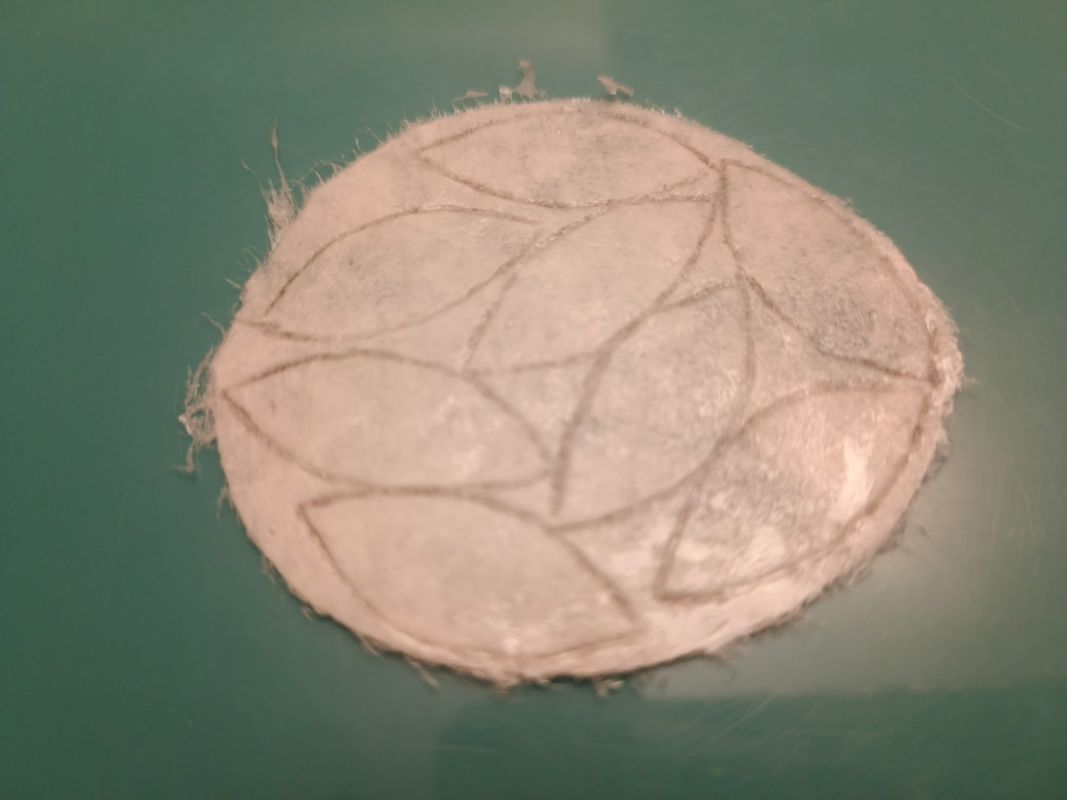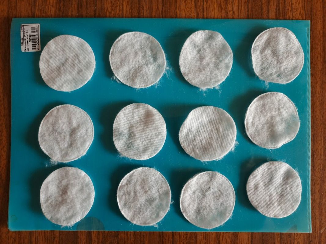 Ватные диски разделяем пополам и укладываем на файл гладкой стороной вверх. Пропитываем каждую половинку ПВА и оставляем до полного высыхания. Не пугайтесь, если диск при нанесении клея поменяет округлую форму — для дальнейшей работы это неважно.