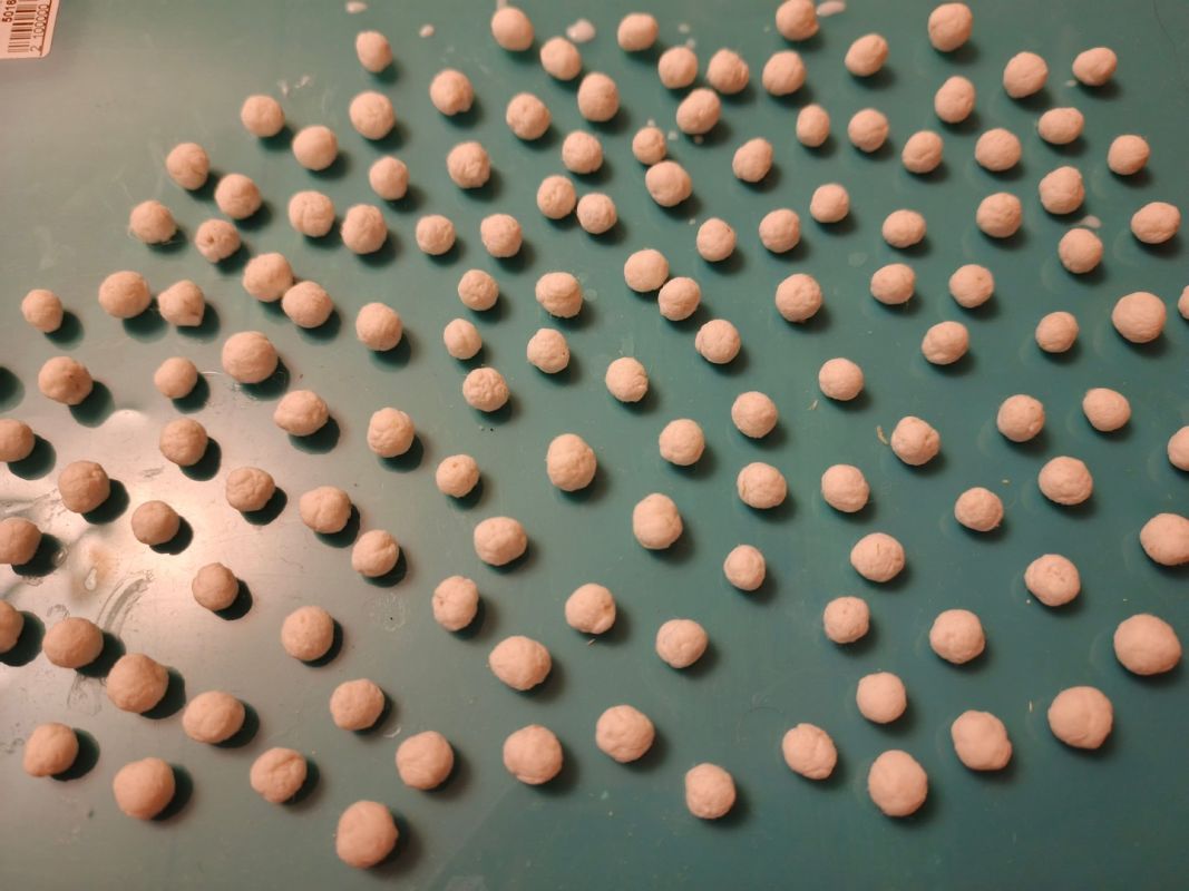 Хорошо просохшие диски должны быть твёрдыми и гладкими с одной стороны. Шарики — твёрдые и лёгкие.