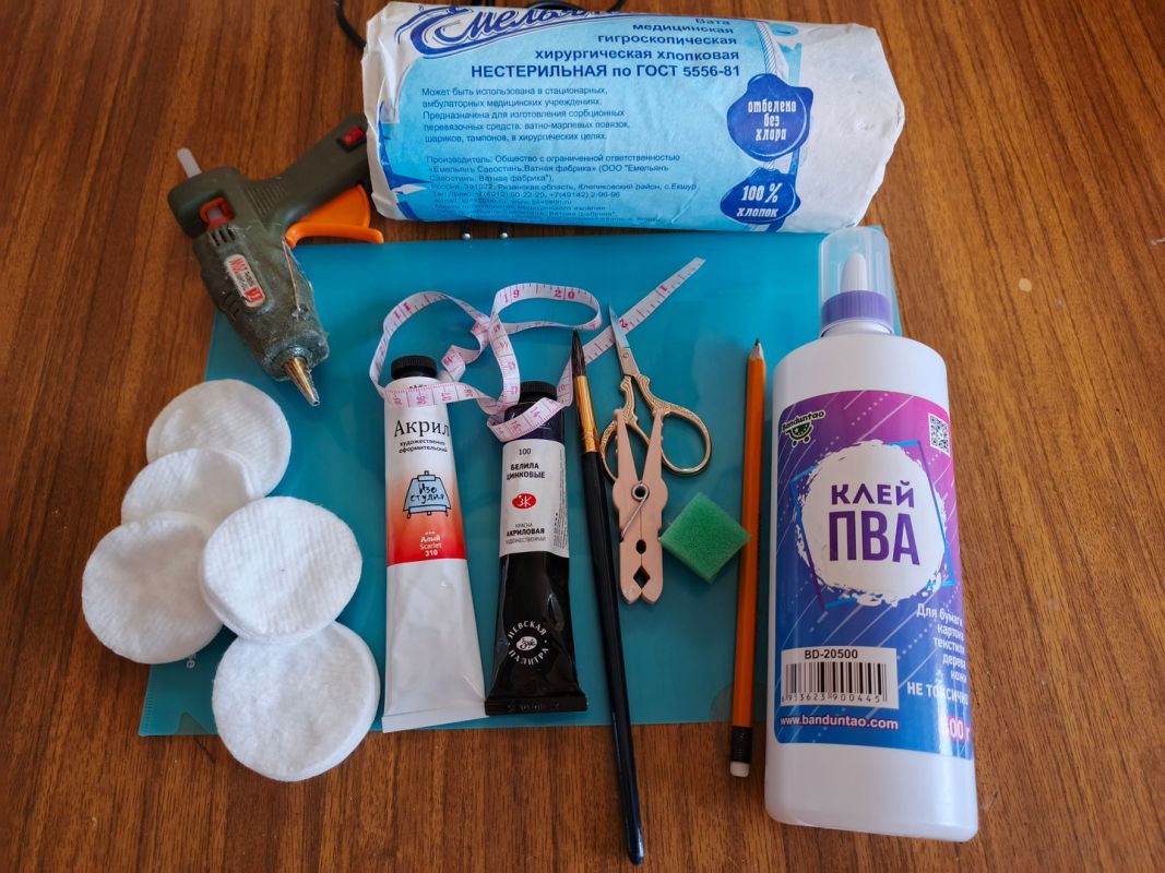 Изготовление ватной игрушки — процесс довольно-таки трудоёмкий. Поэтому сегодня мы будем использовать для декора ёлочного шарика только ватные элементы. Этому меня научила московский мастер Татьяна Соболева.