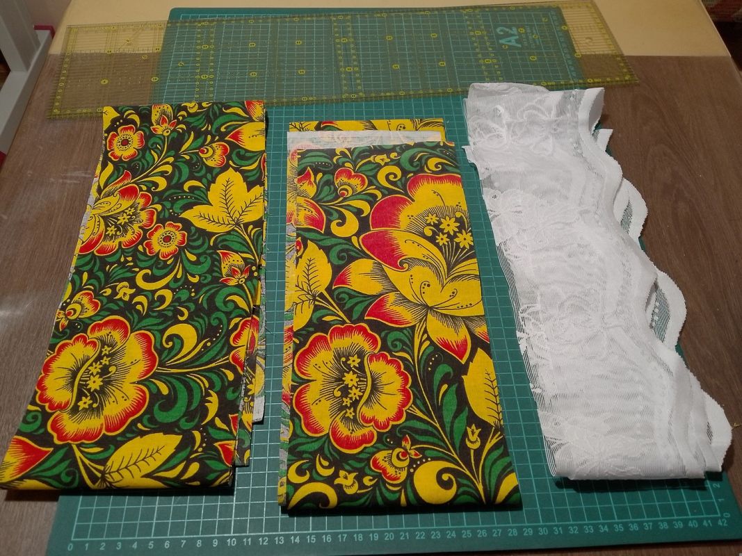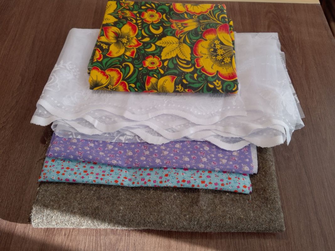 - Два лоскута хлопчатобумажной ткани для основы, примерно 45х45 см (у меня ситец).