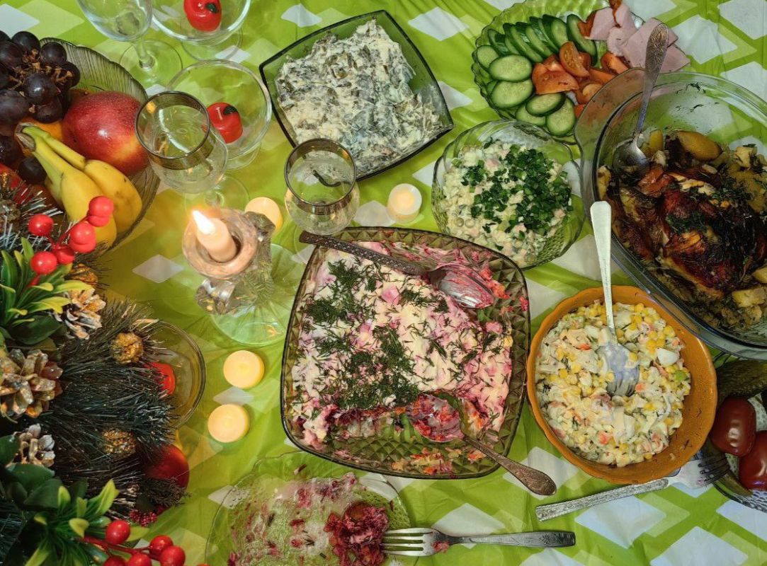 «Оливье» традиционно украшает праздничный стол в новогоднюю ночь и другие торжества. Конечно, каждая семья готовит не один салат, но «Оливье» неизменно остаётся центральным блюдом — у каждой хозяйки есть свой фирменный рецепт.