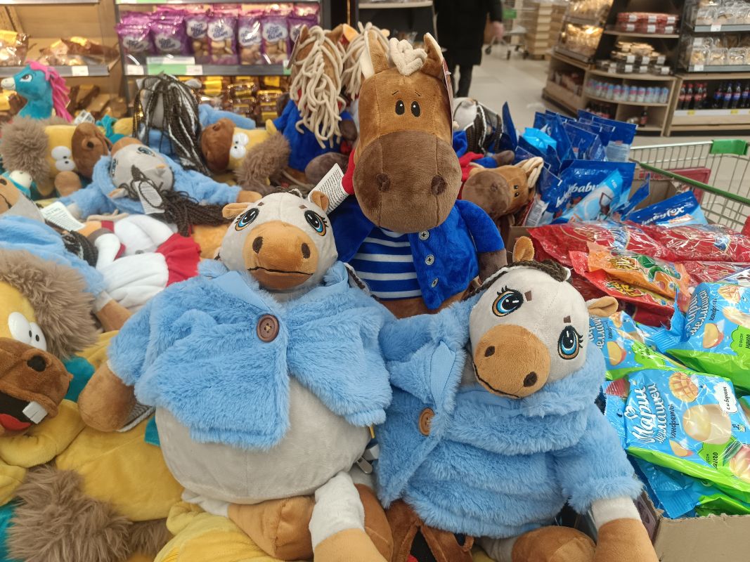Также представлены подарочные комплекты, где сладости упакованы вместе с мягкой игрушкой, конструктором или набором для творчества.