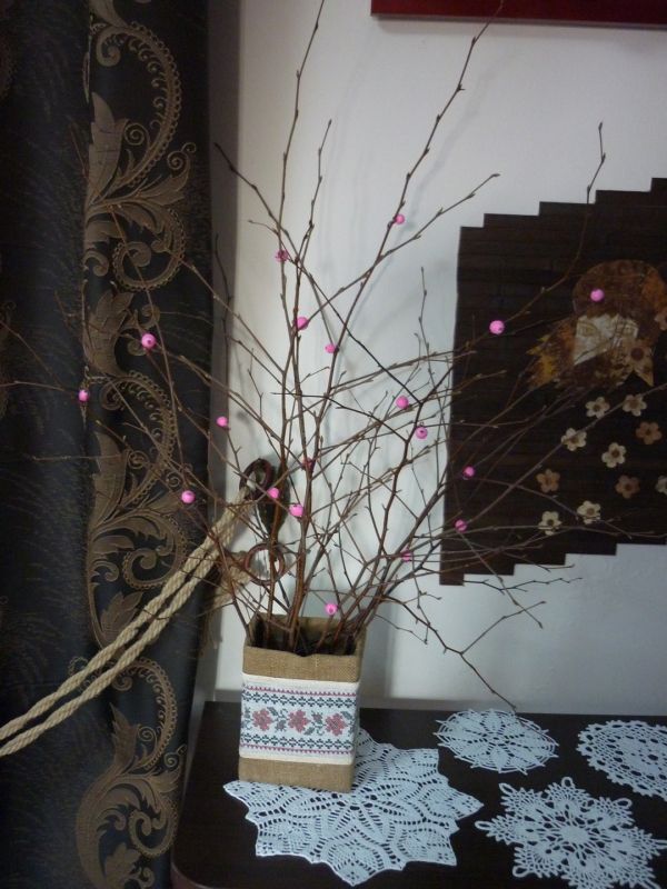Скоро убирать елку, и на смену ей решила сотворить букет из голых березовых веток — почему бы им не расцвести посреди зимы в отдельно взятой хабаровской квартире?