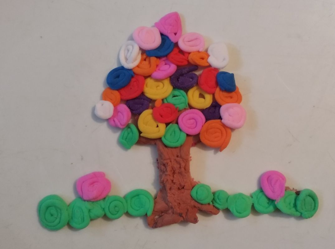 Фигурку для украшения можно сделать любую. В данном случае это дерево, которое легко изготовить без дополнительных художественных навыков. Просто раскатываем тоненькие колбаски и скручиваем их в «бублики». Ствол — прямоугольник, по краям делаем подобие корней и веток, рисунок «коры» наносим зубочисткой.