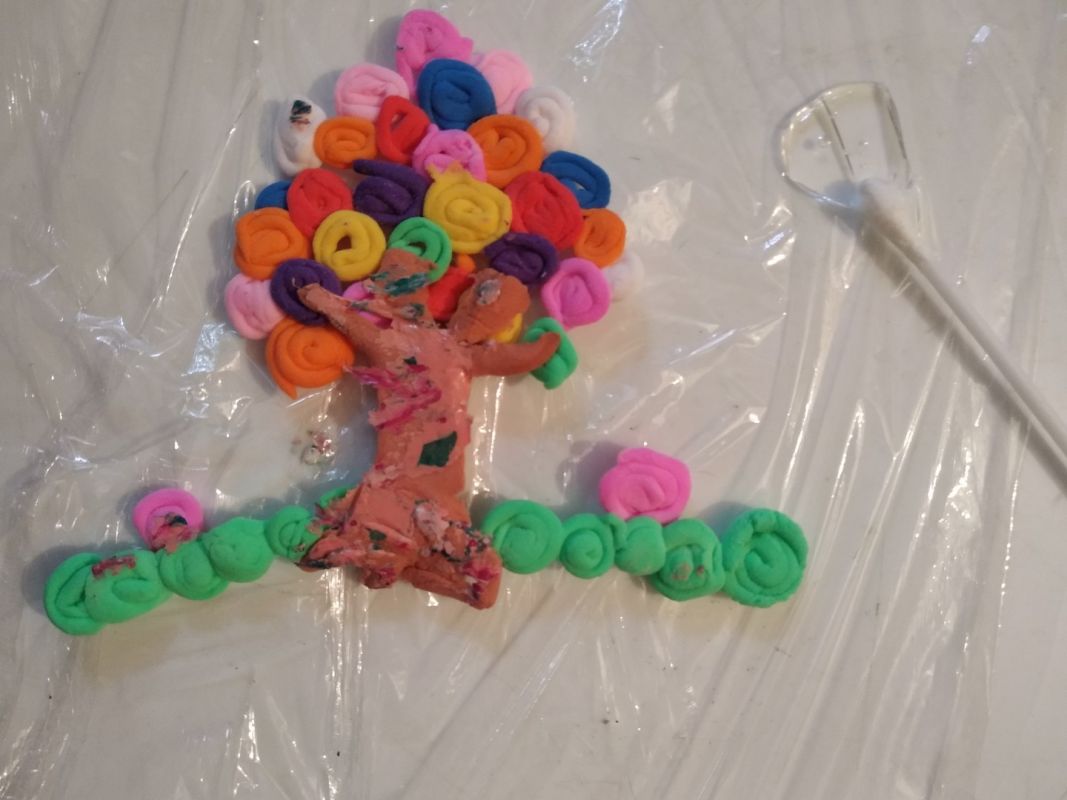«Бублики» накладываем краешками друг на друга, «крону» на «ствол», чтобы наше дерево стало единым целым. Затем накладываем фигурку на кружку и оставляем так до полного высыхания. Это нужно для того, чтобы она сохранила форму кружки.