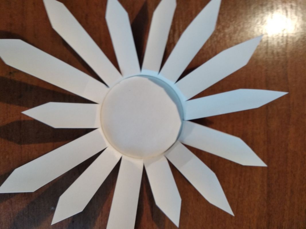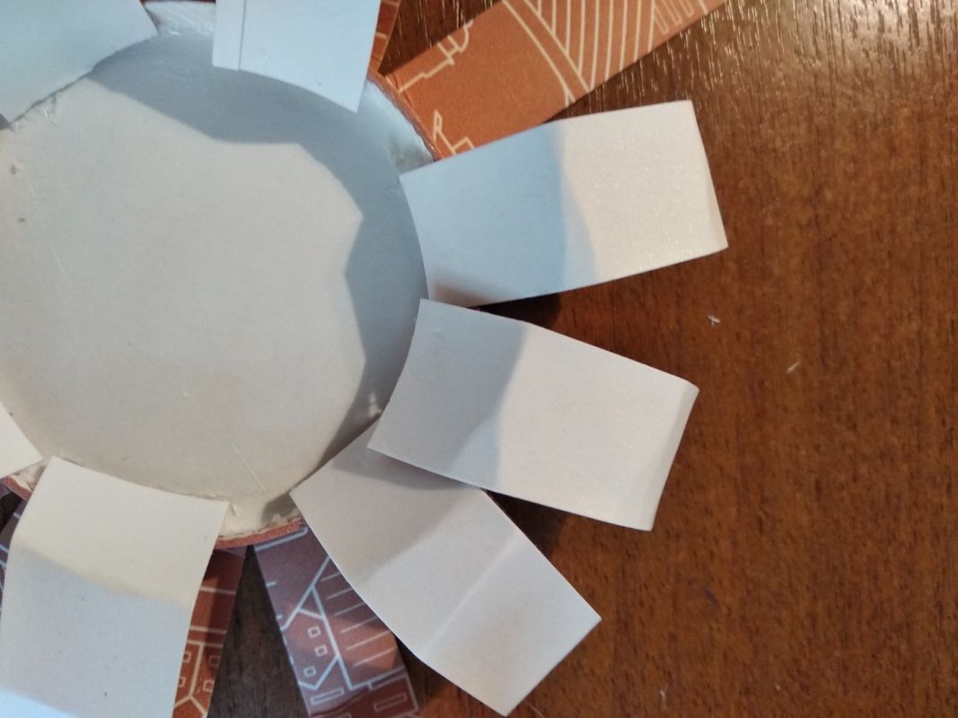 Для второго цветка лепестки загибаем внутрь и приклеиваем по кругу.