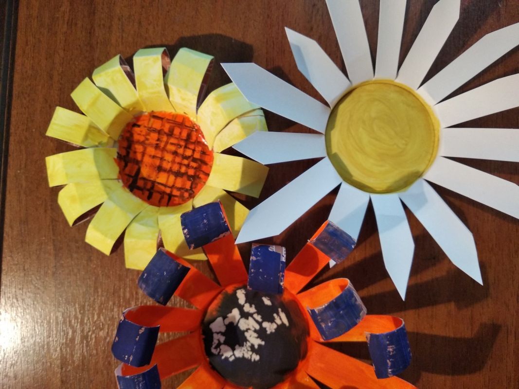 На третьем цветке просто вырезаем из полосок лепестки так, как вам понравится.