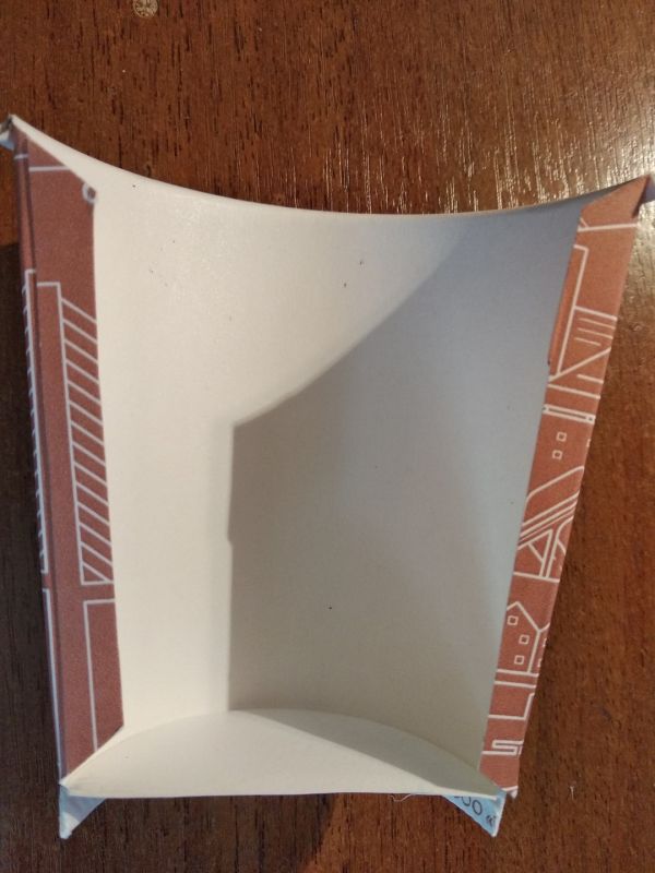 Сначала нам нужно сделать вазу. Для этого разрезаем один стаканчик пополам. Затем по краям отчерчиваем линию 5 мм — это линии сгиба. Подрезаем уголки и сгибаем полосочки. Они нам помогут более плотно приклеить вазочку к картону.