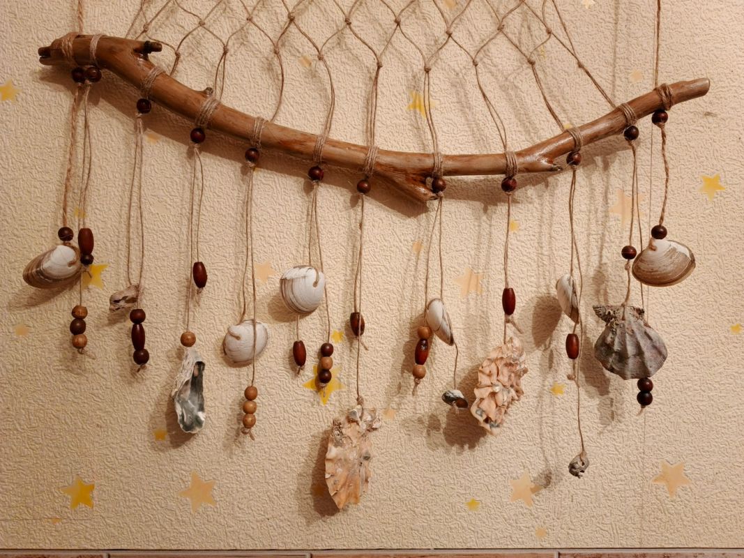 - Элементы для украшения. Это могут быть акриловые или деревянные бусины с широким отверстием (чтобы проходил шпагат), ракушки, пёрышки, подвески и т.д.