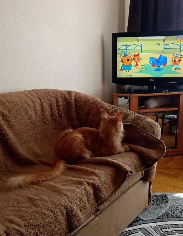 Теперь его жизни ничего не угрожает. Рядом — родной человек, удобный диван и телевизор, по которому идёт любимый мультсериал «Три кота».