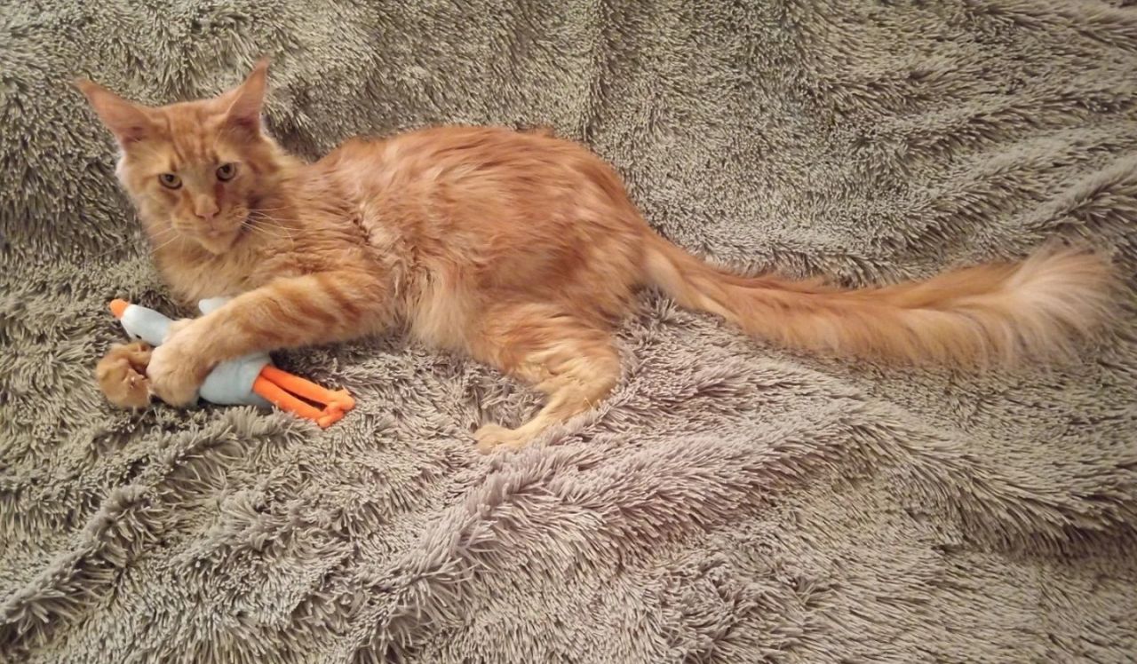 Котика случайно нашли на дачах под Курском. Грязный, голодный, напуганный кот выполз к людям, прося о помощи. Больше двух месяцев волонтёры боролись за его жизнь, а когда кот пришёл в себя, дали объявление о пристрое. Так рыжий мейн-кун Стёпка оказался у хабаровчанки Анастасии Аполуниной.