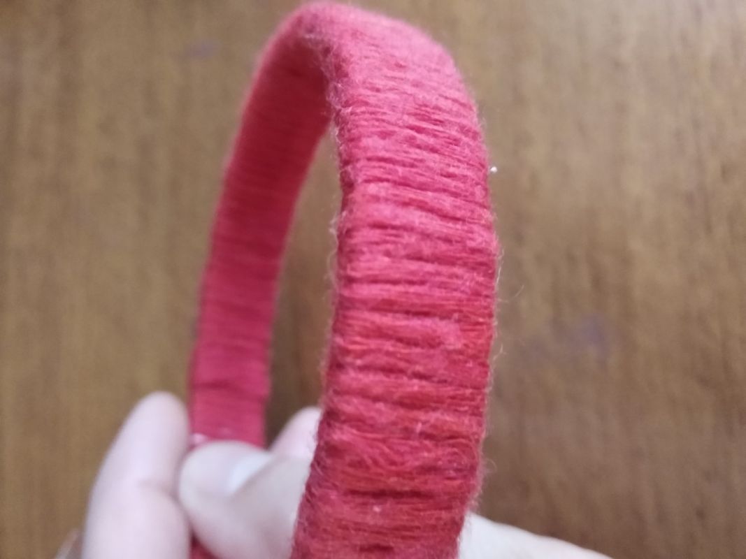 При обмотке нить стараемся класть как можно плотнее и ровнее, периодически смазывая основу клеем. Кончик нитки после полной намотки приклеиваем на внутренней стороне браслета.