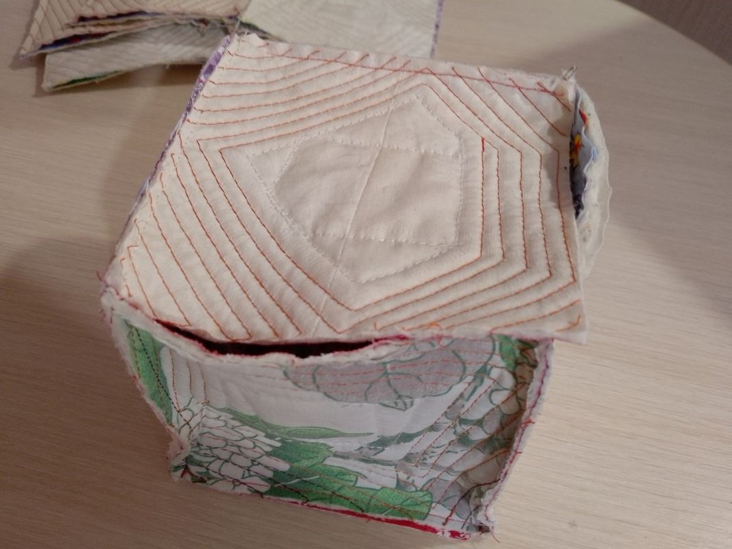 Простеганные блоки нужно осноровить: обрезать по линейке все лишнее и выровнять до квадратов со стороной 12 см. Шов у меня будет 0,5 см, соответственно, готовые кубики получатся с гранью 11х11 см.