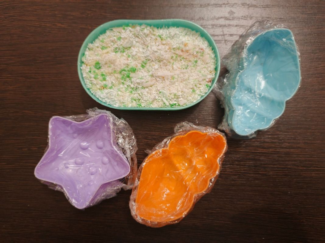 - Формочки для мыла (можно использовать обычную пластиковую мыльницу).
