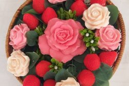 – Лучше хранить его в сухом месте. Если в помещении влажно оно выпускает масло, и как бы покрывается росой. Букет в хороших условиях может простоять до трех лет. Мыло не портится, там же все натуральное.