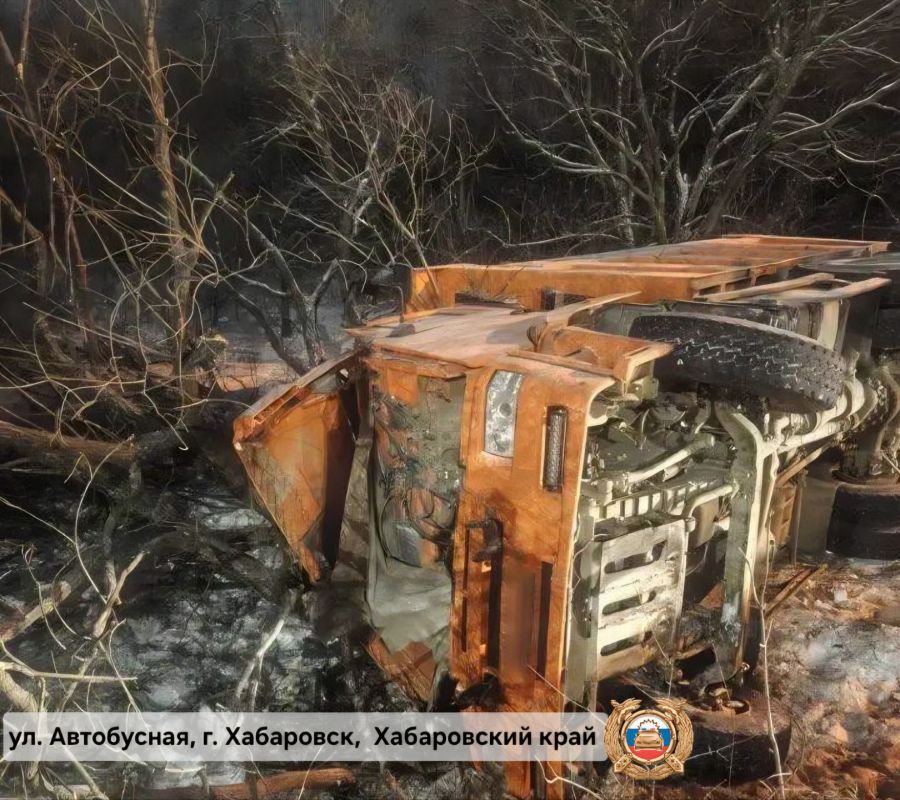 Ночью в Хабаровске перевернулся КАМАЗ — есть жертва