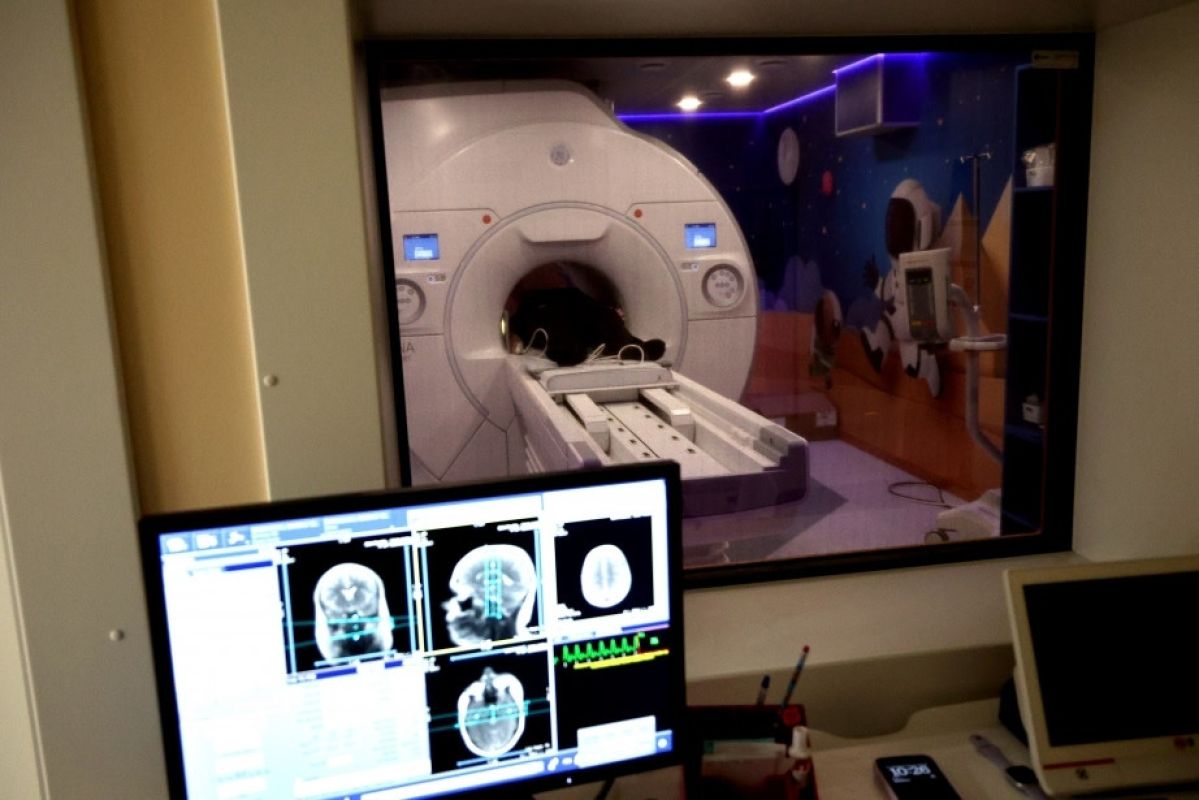 Аппарат рассчитан на 2500 исследований в год. Кабинет томографа оформили в космической тематике.