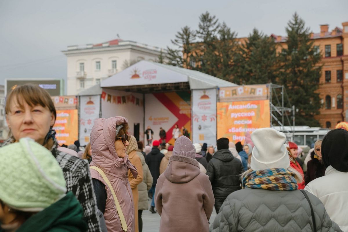 Попасть на площадь в день праздника оказалось делом непростым — пространство огородили, на входах установили металлоискатели. Но уже к полудню площадь наполнилась людьми до отказа. Здесь было шумно, громко и по-настоящему весело. С правой стороны выстроились уютные домики-корнеры с мастерами ручной работы, слева расположились интерактивные площадки — «Кузня», «Русские забавы» и «Казачья удаль». На протяжении всего дня на площади проходили лекции о русской кухне и мастер-классы, а на сцене выступали творческие коллективы.