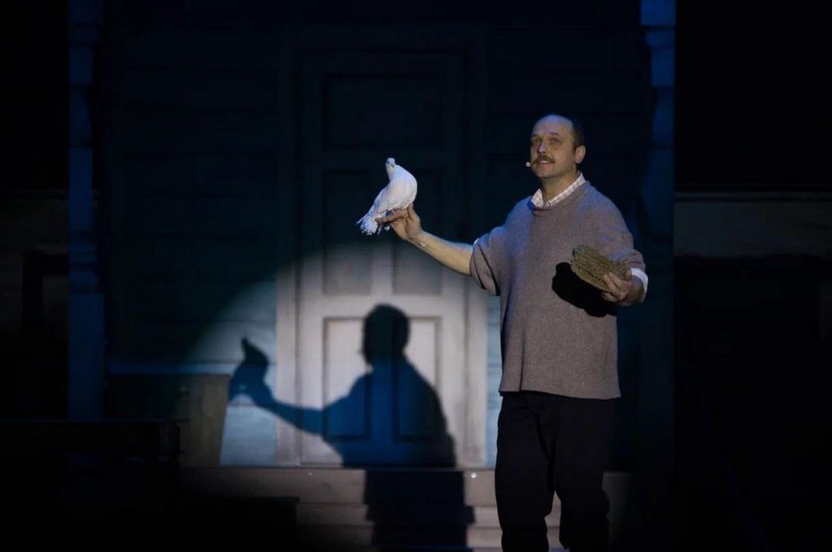 «Голуби — существа пугливые, особенно в работе со светом, — раскрыл профессиональный секрет художник по свету Валентин Бакоян. — Яркий луч для них — стресс. Поэтому нам пришлось полностью пересмотреть световую партитуру спектакля. Мы делали свет мягким, рассеянным, работали в тесной связке с хозяйкой птиц, чтобы наши крылатые артисты чувствовали себя комфортно».